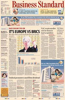 Established in 1975, the broadsheet daily Business Standard is printed in both English and Hindi. Reaching readers in over 1000 towns and cities, the main English-language edition is in 12 cities: New Delhi, Kolkata, Bengaluru, Coimbatore, Chennai, Ahmedabad, Hyderabad, Chandigarh, Pune, Lucknow, Raipur, Bhubaneswar and Kochi and has a daily circulation of 217,000.