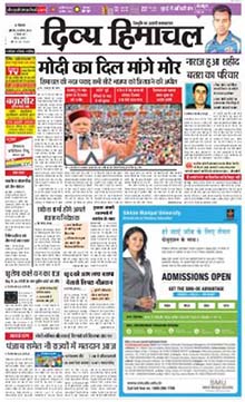 Divya Himachal is a Hindi broadsheet daily newspaper of Himachal Pradesh, having circulation in Himachal Pradesh, Punjab, Haryana, Uttranchal and Chandigarh, covering all of Himachal Pradesh with its editions in Dharamshala and Shimla. It is the state’s only newspaper with separate district pull-outs for Mera Kangra, Mera Bilaspur, Mera Shimla, Mera Solan, Mera Una, Mera Sirmour, Mera Kullu, Mera Mandi, Mera Chamba, Mera Kinnor and Mera Hamirpur. The Divya Himachal Group is ranks as Himachal Pradesh’s No. 1 media group. Divya Himachal carries ads in such categories as