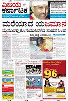 Vijay Karnataka is an old broadsheet Kannada daily newspaper now owned by Bennett, Coleman & Co. Ltd., publishers of India’s leading newspaper, The Times of India, and published all over Karnataka — Bengaluru, Hubballi, Mangaluru, Shivamogga, Kalaburagi, Gangavathi, Belagavi, Davanagere, Hassan, Chitradurga etc. It carries ads in various categories like Property, Obituary, Public Notice, Education, Recruitment, Remembrance and Tender Notice.